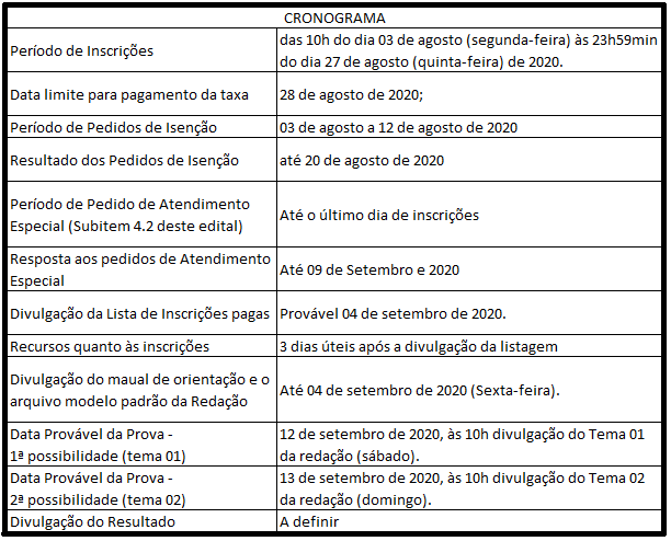 Inscrições vestibular de 03 de agosto à 27 de agosto de 2020