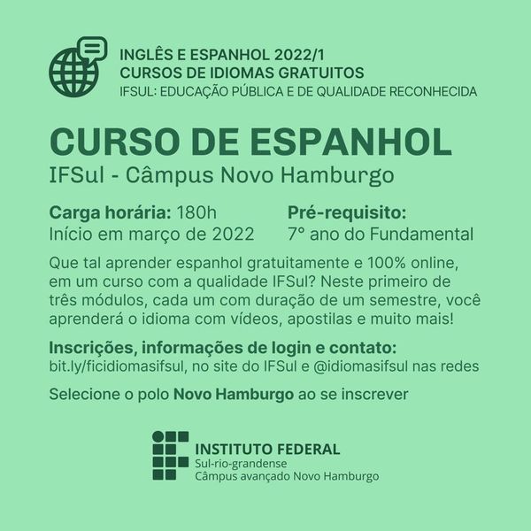 Cursos de Espanhol e Inglês com inscrição aberta, pelo IFSUL